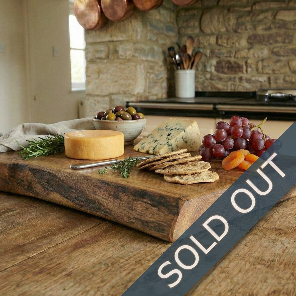 Ideal for chopping, serving, or display, this board balances everyday practicality with standout design. Each piece is finished with food-safe oil to enhance the grain and provide durable protection, allowing the natural beauty of the oak to take centre stage.